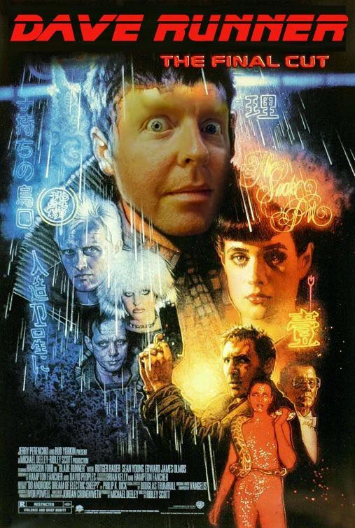 Dave Runner does not like replicants. But, ladies and gentlemen, perhaps the Dave Runner IS a replicant! Whoa!! Did I just fart on your brain?! Good!! That's what replicants do!! They're well-known brain-farters, don't ya know!! And THAT'S one to grow on!! By the way, I may or may not be on goofballs!! - East Side Dave