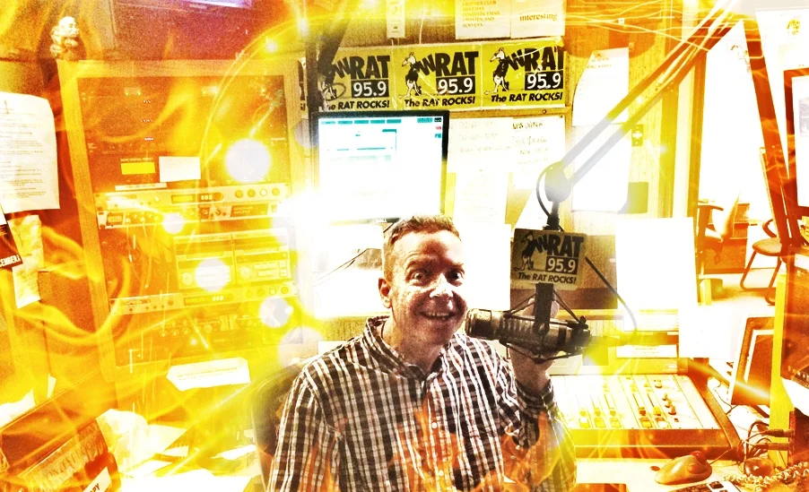 Nothing to see here except a radio studio bursting into flames.