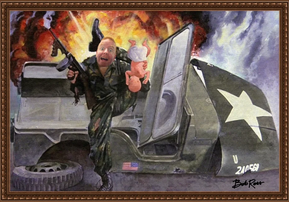 Behind the Scenes look at Bob Ross creating the "Airplane"-inspired painting entitled 'Dave Kills Babies"