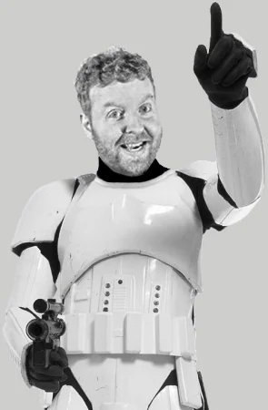 It has just occurred to me that I have been inserted into a plethora of Star Wars pics. So, for the first time ever, here's every Davey Mac-Star Wars photo-shop that I have on my computer, with special thanks to R2-D2 for compiling this list. May the Force be with you, dogsie!!
