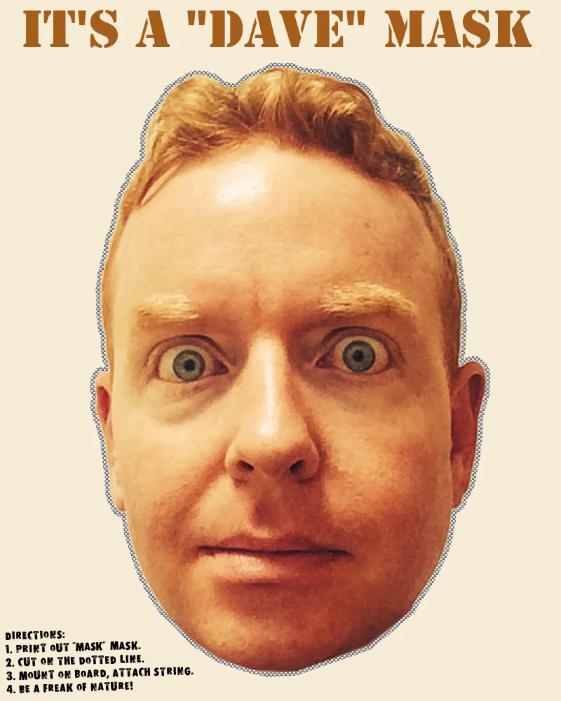 You're welcome, Dave Pound. I have given you the greatest, most cost-effective Halloween costume that you could possibly receive...the East Side Dave Halloween Mask! What I'd like you to do is click on the picture in this article. Then, print this son of a bitch. After that, you can keep the eyes...or cut them out (cutting them out would probably be better for your vision). Lastly, Scotch-tape the mask to your head and then scare the Holy Hell out of your loved ones and enemies. BAM!