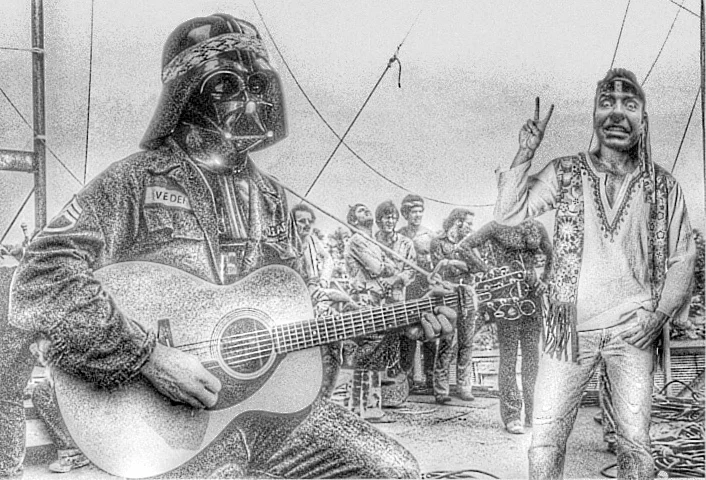 The year was 1969. The buzz at Woodstock was the arrival of Vader & David, music's hottest new group. They had compiled such hits as "The Sound Of Sith-Lords" and "Star Destroyer Fair". But when they unveiled their newest, unheard single, "We Just Blew Up Alderaan", the crowd was unkind. That awkward performance would be their final one. The two would part, but only after Force-Choking out the entire audience.