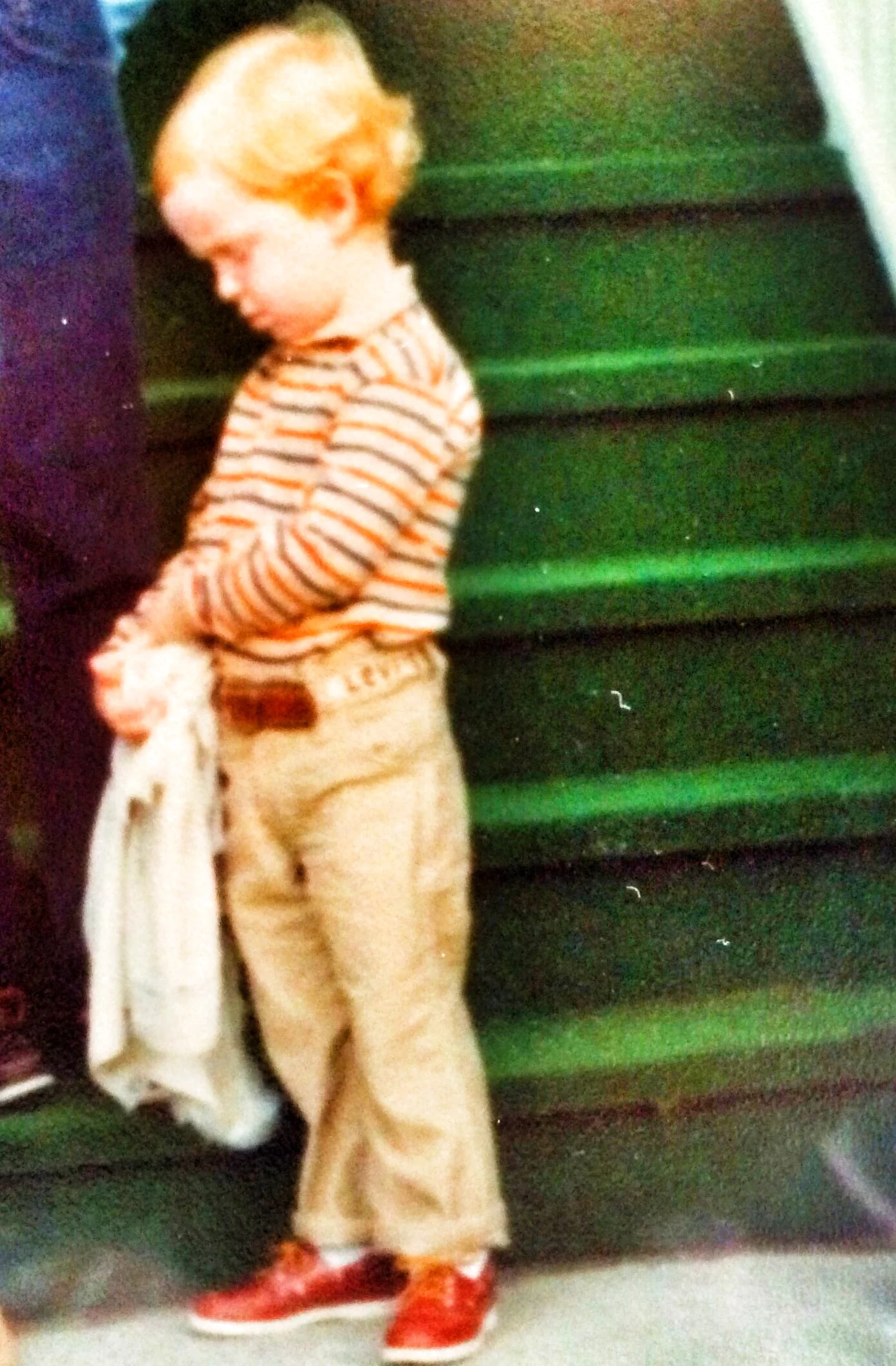 ...I call it a glimpse into the mind of an emerging Super-Villain/Hero: Little East Side Dave McDonald. Here I am, clearly planning on how to escape from pre-school with my woobie. My idea: to use it as a whip, a la Indiana Jones, swing it up to the air vent, and crawl upwards. At which point, I could take my Fisher Price screw-driver, take out the grate and crawl through the duct to childhood FREEDOM. That is all.