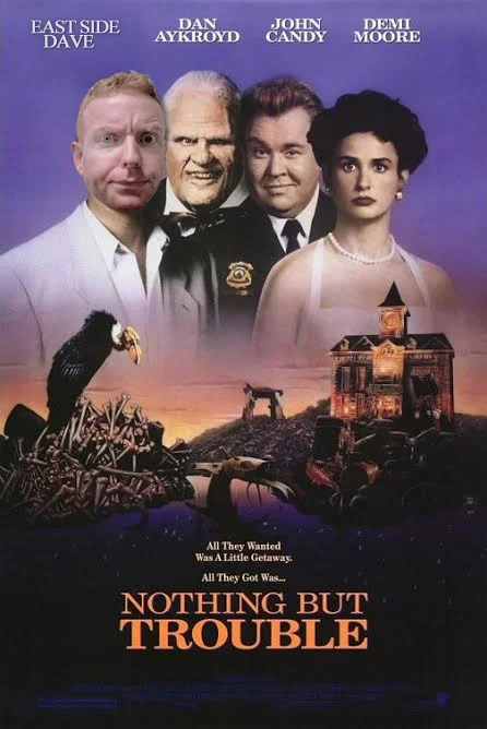 ...The year was 1991. And a film, based in the beautiful Garden State, would emerge as a lasting depiction of the New Jersey Turnpike, Digital Underground, and weird, fat twins. The movie...was Nothing But Trouble. I remember HBO running this flick what seemed to be every other day for a while; and the Dave Man watched it each and every time. I began to realize, as a blossoming young teenager, that that Demi Moore person was making my boy parts tingle. Then there is Dan Aykroyd in horrible make-up as "The Judge", the second most evil character in movie history behind the Emperor. Chevy Chase and John Candy were also in the film. But a big shout-out to Digital Underground (Yes, the rap group that gave us the poetic, musical classic, "The Humpty Dance"). God bless you, Nothing But Trouble, you made my home-state of New Jersey look like the scariest and utterly freakiest place on the face of the planet Earth. This has been a cinema review......by........
