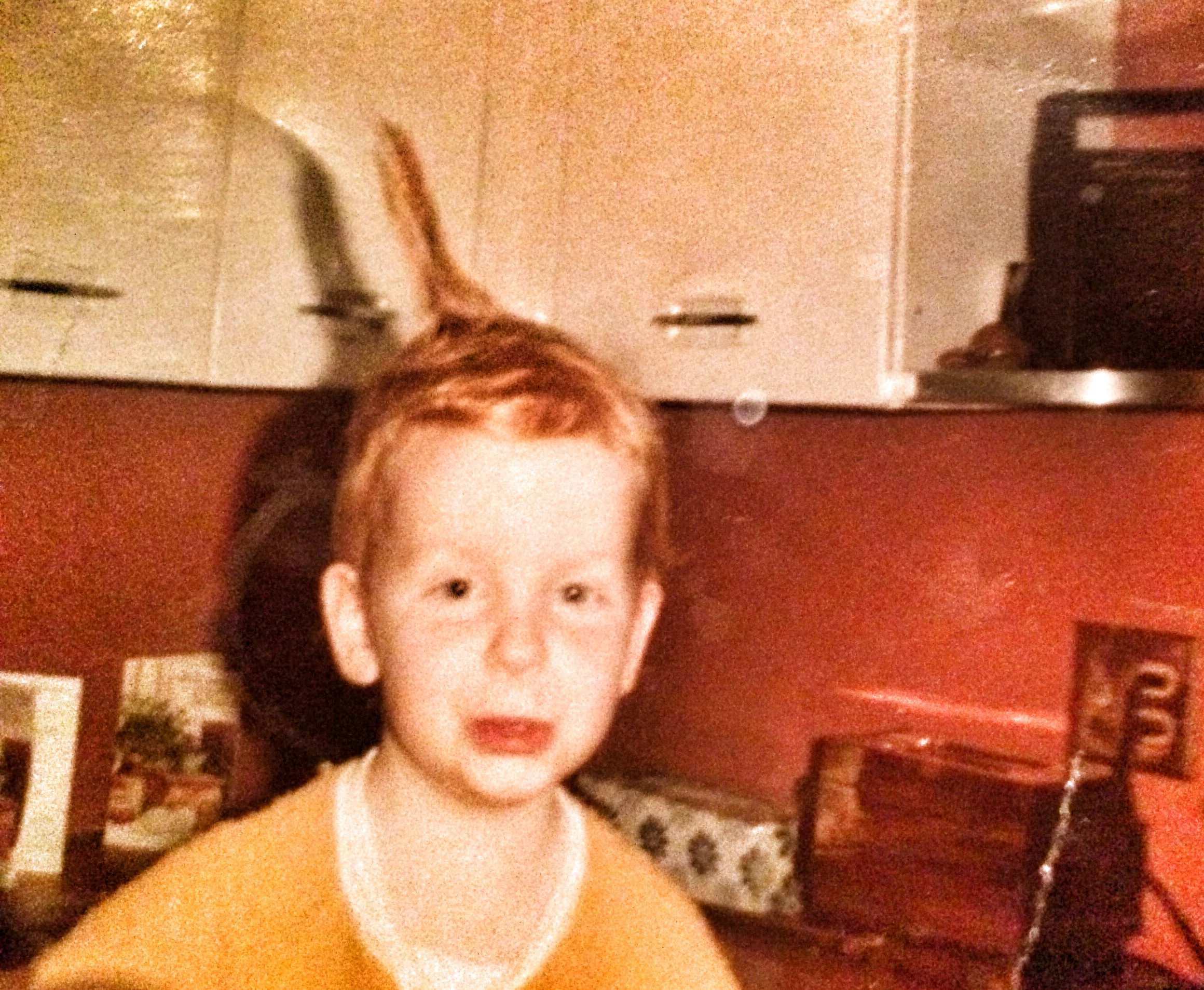 I wish I could tell you what was going on in this Throwback Thursday pic. But alas, dogsie, I cannot. I barely recognize the evil/vacant stare in that small boy's eyes. I know that kid is me. I found this in the Dave Has Always Been Crazy photo album. But I don't know what has happened to my hair, nor why I appear to be wearing a yellow jumpsuit. This is just lunacy. I'm thinking some kind of alien abduction and experimentation has taken place on Little David here. Enjoy your day.