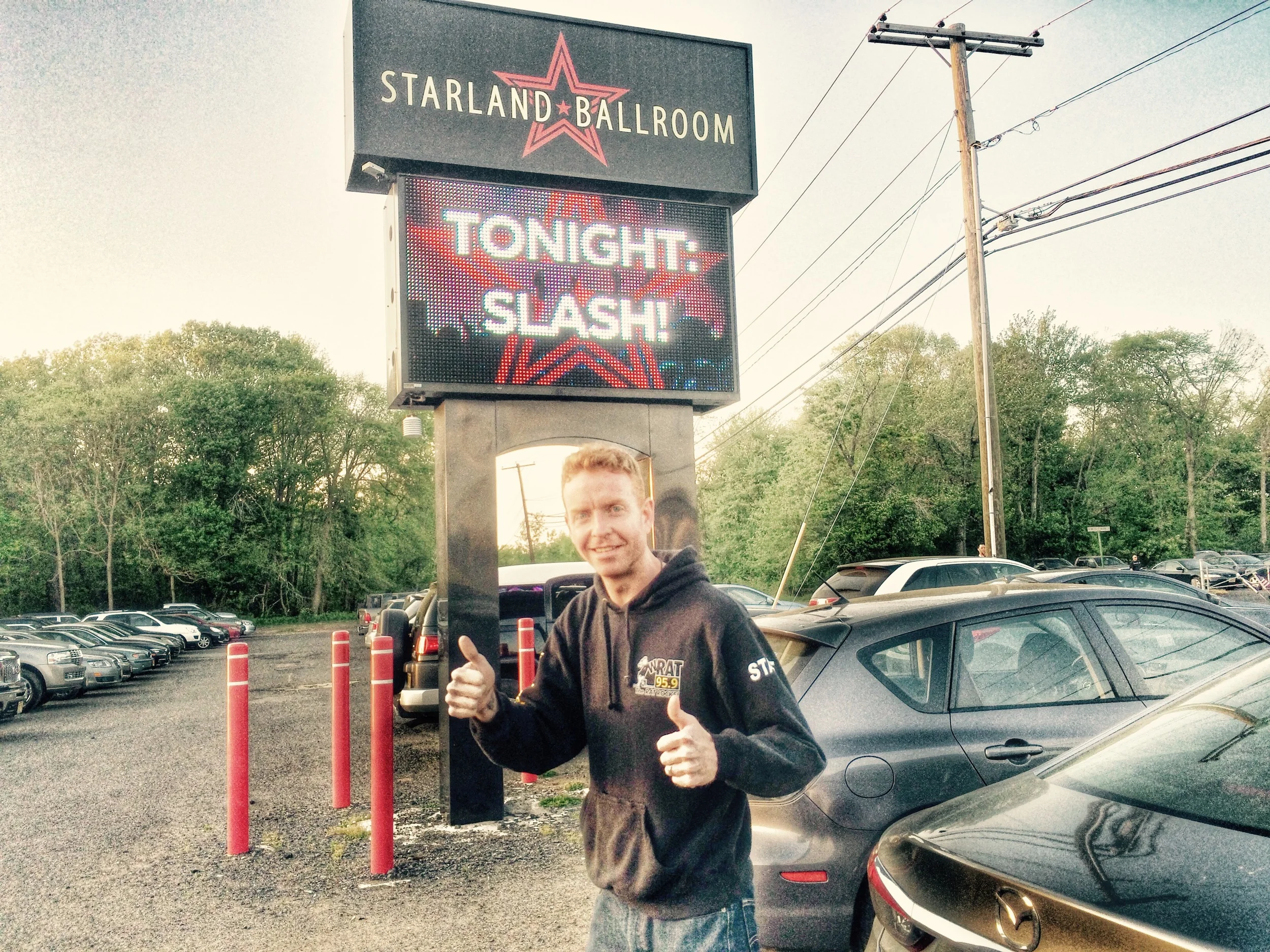 Well, we had at phenomenal time at the Slash show (present by WRAT, 95.9 FM at the Starland Ballroom) last night!! The Dave Man was there representing WRAT and, no, I did not frighten nor disturb Slash. I did scare several people in the audience, however, by just looking overall freakishness. Anyway, great times....now let's ROCK today!