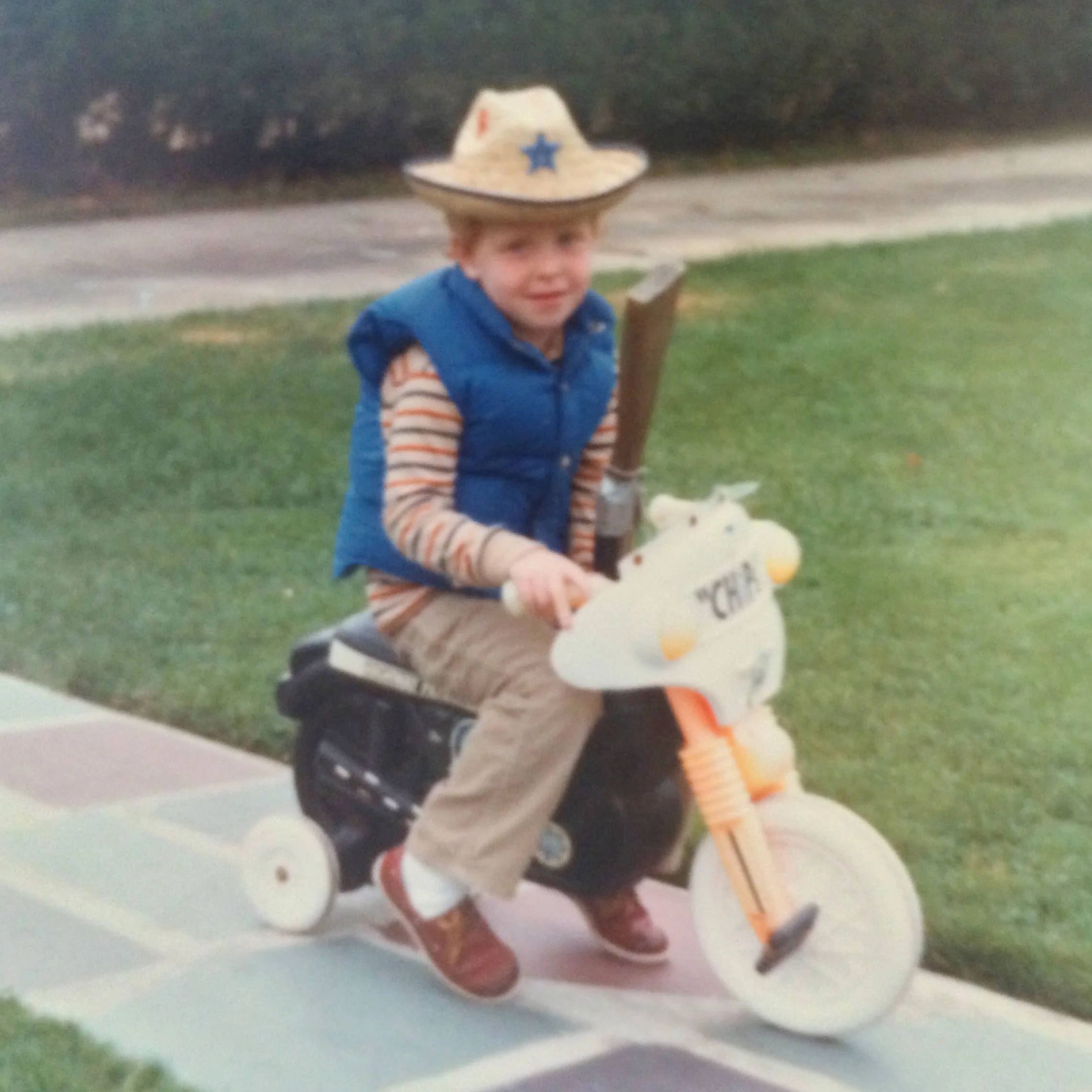The proof is in ths picture, baby. That's Lil' Davey Mac (about six years old) riding a "CHiPs" motorcycle that Santa gave me for Christmas. I guess I was a big Erik Estrada fan. But quite frankly, I can't recall ever liking the show "CHips". I definitely remember loving "The Dukes Of Hazzard".....but I guess Santa couldn't afford to get me a '69 Dodge Charger. Oh, well. Maybe NEXT year, Santa!! I'm still waiting, you jolly son of a bitch!!