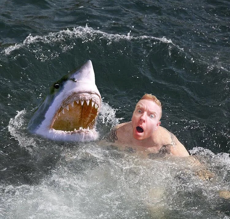 I have to tell you, as someone who once had my face bitten off by a shark and had to get a head transplant, I can only say to you, my dogsies: try not to swim with sharks and tell them anti-fish jokes. They just don't get sea humor. See you today on Jersey's legendary 95.9 The RAT at 6 AM (EST). And please call a doctor for the me. Thank you.