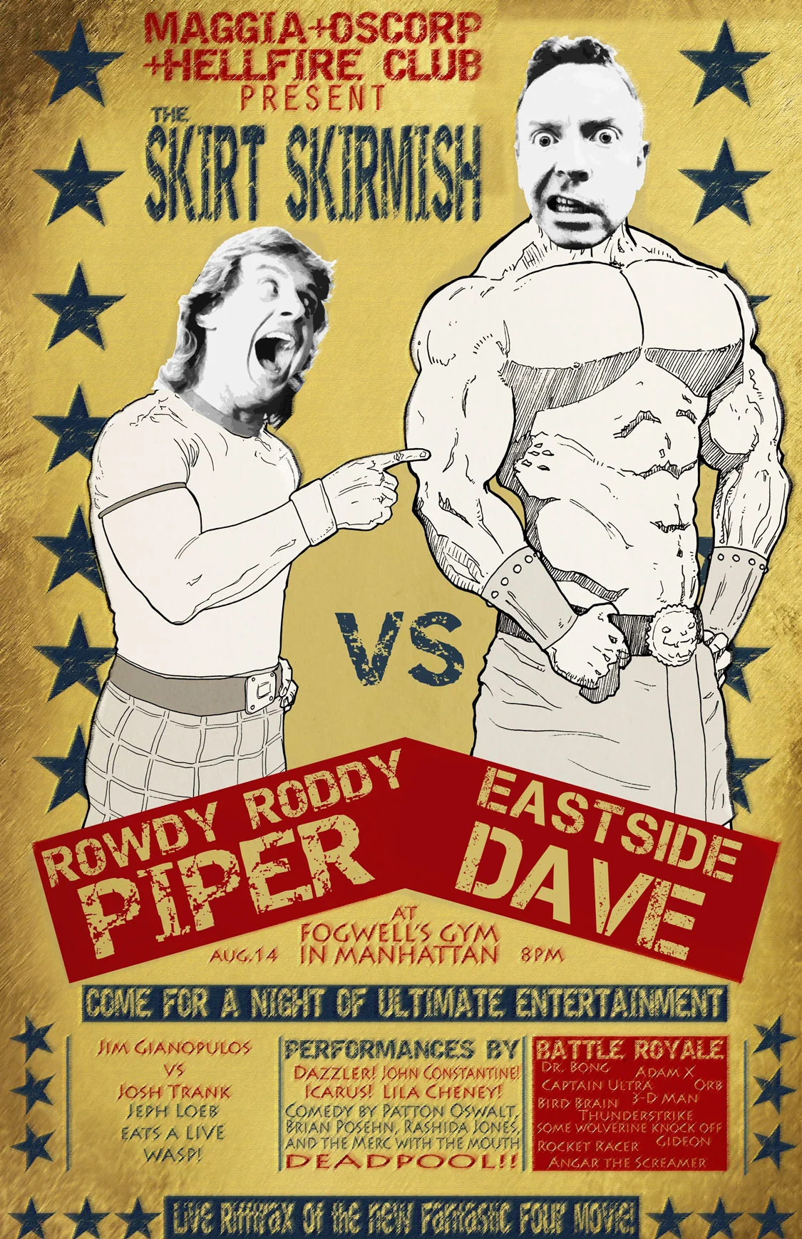 It's being called "The Greatest Wrestling Match Ever That Won't Actually Happen Because One Of The Competitors Is Currently Deceased"......"Rowdy" Roddy Piper Vs. "East Side" Dave McDonald...in a never-before-seen Winner-Takes-Kilt match. After their epic battle, however, the two pals will have a nice, tropical drink served in a coconut before slamming said coconut into Jimmy "Superfly" Snuka's head. Peace!