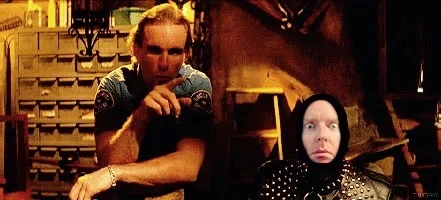 If I was the Gimp, I wouldn't mind hanging out in that shop all that much. And the box they'd keep me in seems kind of comfy. Plus, being a Judas Priest fan, I even like the outfit. But for crying out loud, I do not appreciate it when the blonde guy taps on my head. That's not a bongo, sir. That's my skull. That is all.
