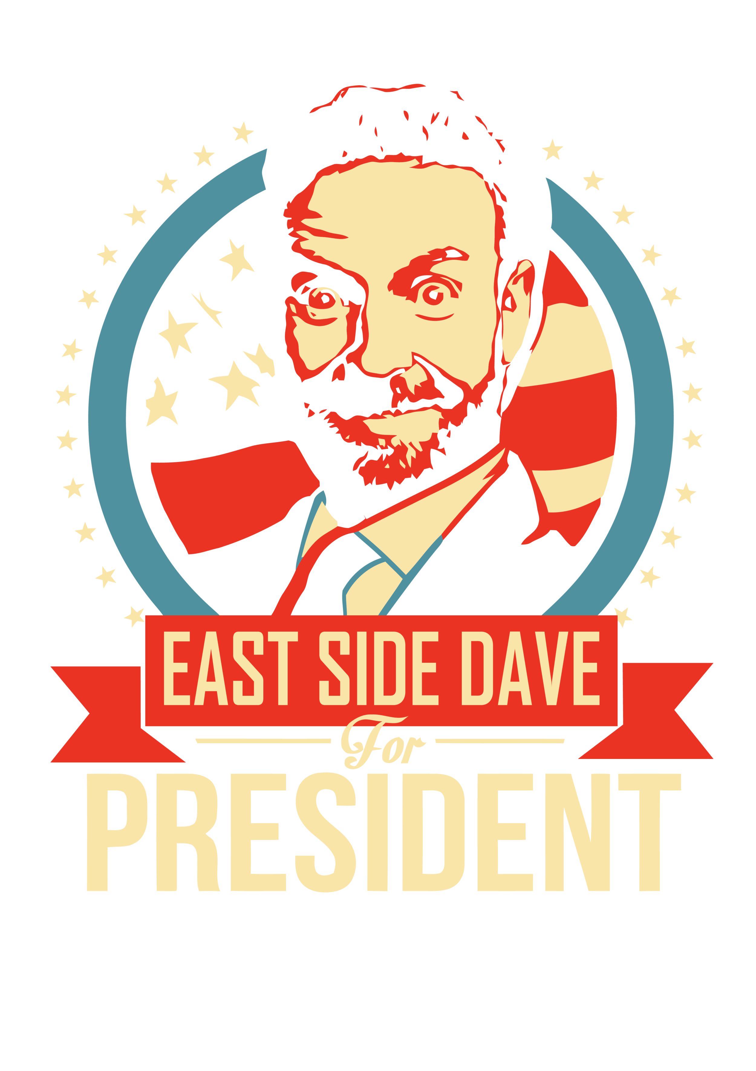 I am so generous. I'm, like, seriously charitable, yo. That is why I am giving you this awesome East Side Dave For President PNG file for free. Now you can print it out and do with it what you will. Suggestion: give it to someone you really don't like and make "Hiss" noises. Watch a new East Side Dave Show on CompoundMedia.com. And listen to Dave weekday mornings on Jersey's WRAT 95.9 FM. YES, daddy. YES.