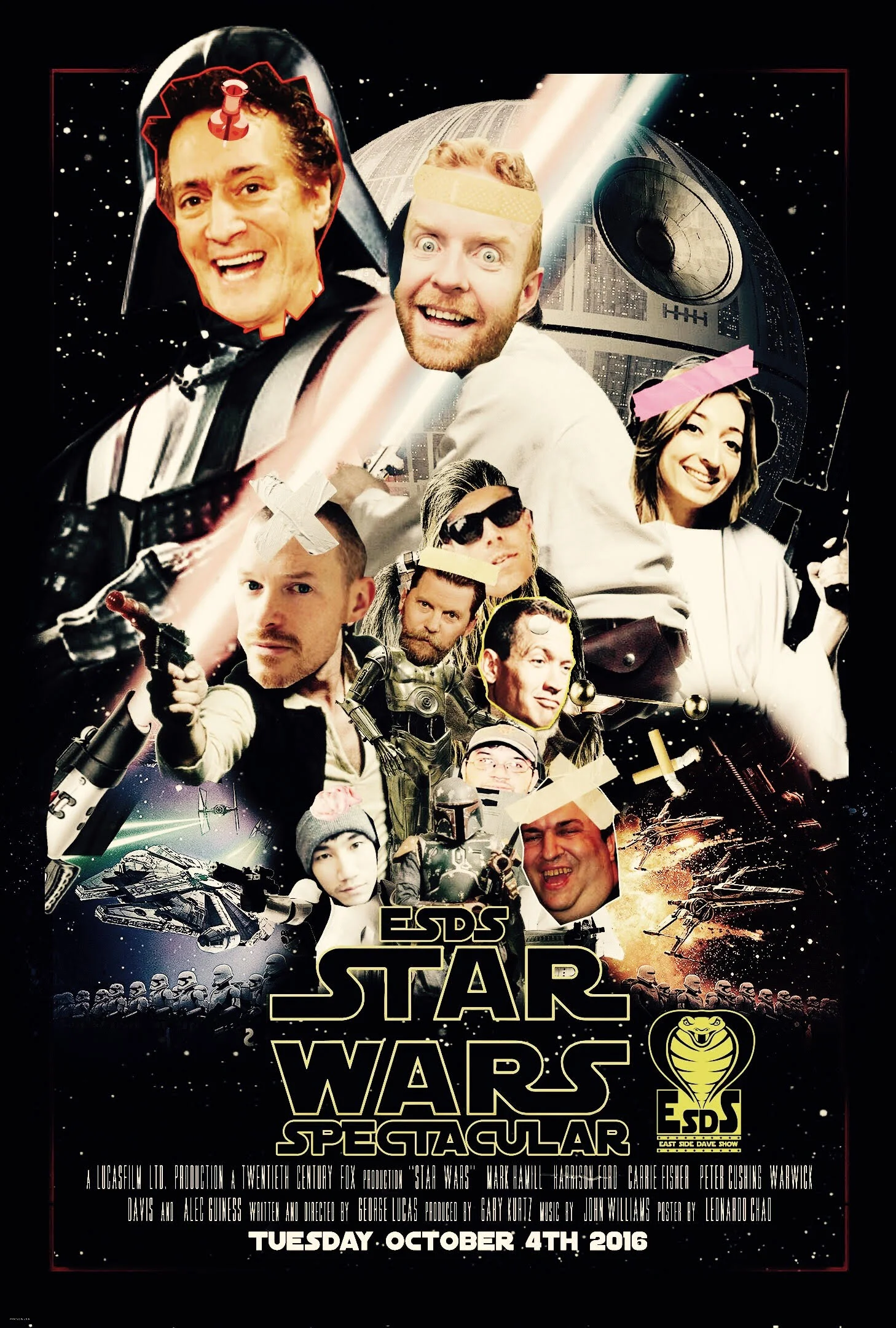Oh, Holy Wookies! Have you heard the Galactic News?! The East Side Dave Show Star Wars Spectacular is coming to the Planet Earth on Tuesday, October Fourth! The show will feature the stars of Compound Media as they re-enact the classic, 1977 version of Star Wars! So hop on your Dewbacks and Banthas and ride with the ESDS into intergalactic awesomeness! October Fourth!