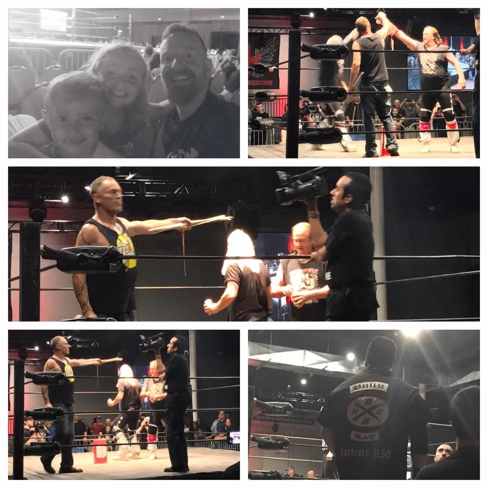 Oh, YEAH, brother! Davey Mac, Stanley Mac, and Julianna Mac (otherwise known as The Mac Foundation) attended the independent wrestling federation known as the House Of Hardcore...and we nearly took over! The Mac Foundation annihilated most of the competition...but just as they were about to get their hands on WWE Hall-Of-Fame tag-team, the Rock 'N' Roll Express, ECW's legendary Sandman showed up to protect them! So, I'm issuing a challenge! We'll get you, Rock 'N' Roll Express!! If it's the last thing we do!!!