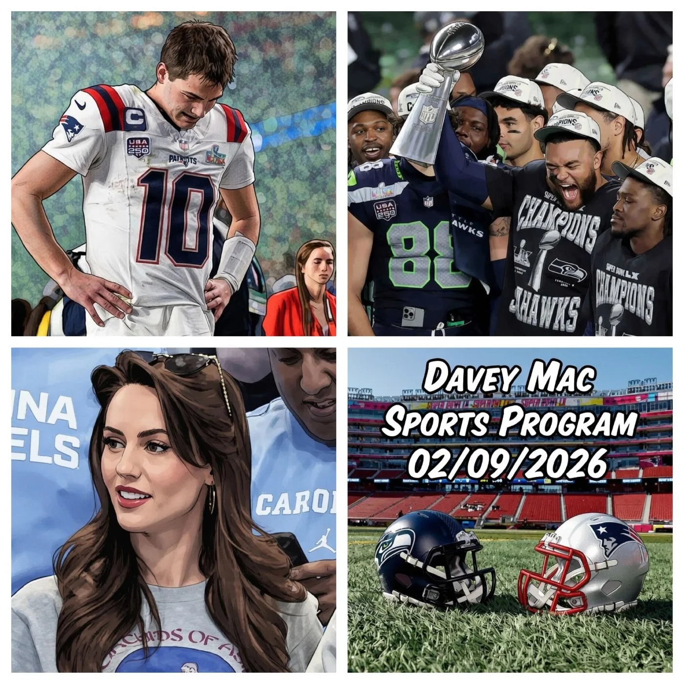 It's a Davey Mac Sports Program Super Bowl Special! The guys discuss the Seattle Seahawks beating the New England Patriots in the big game! How did Sam Darnold and Drake Maye do? Is Mike Macdonald the smartest head coach in the NFL? Where do the Pats go from here following this loss? Kenneth Walker III named Super Bowl MVP! Plus, ESPN's Mina Kimes tweets stupid things and the DMSP calls her out on it! Are analytics and sports nerds truly destroying sports? We talk about it! Also, the program looks at the Super Bowl Half-time show with Bad Bunny---how did he do? And, Bill Belichick's crazy girlfriend trolls Patriots owner Robert Kraft! We look at the Olympics, a little basketball and baseball, and have a great time! Enjoy this 421st episode of the award-winning Davey Mac Sports Program today! BOOM!