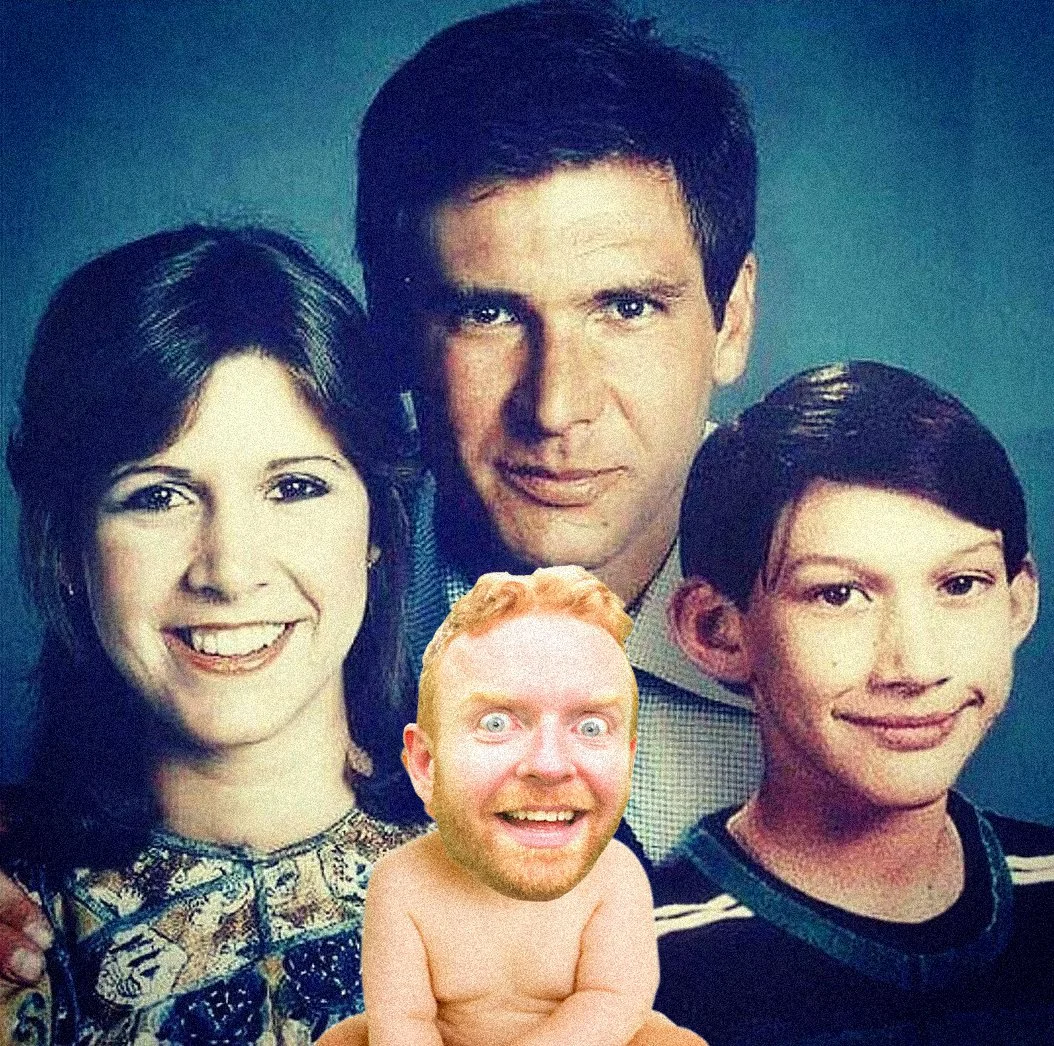 Look at how nice-looking we are. Check out Papa Han. Isn't he just the greatest? He cough me a speeder bike for Christmas! And Mama Leia makes this best blue eggnog you'll ever taste. I'd watch out for my brother, Ben, if I was you, however, he's.....well.....he's a little unstable. Peace!